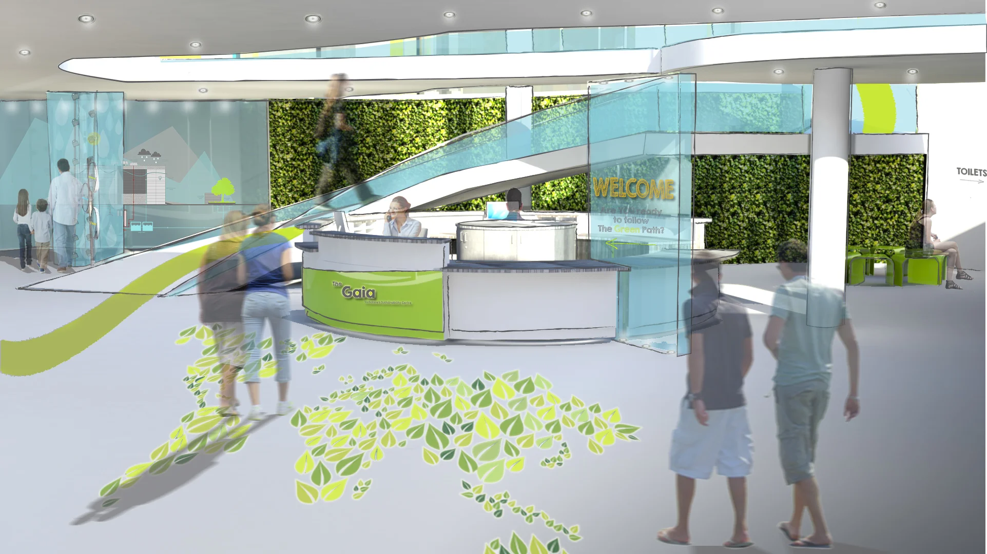 RE-VIVE created this concept design and visuals for a Sustainability Centre; 'The Gaia' would be an independent global hub, designed to inspire a dialogue among all ages. We developed the 'Follow the Green Path' exhibition to educate on the challenges faced in achieving a more sustainable future, and stimulate widespread awareness and action.